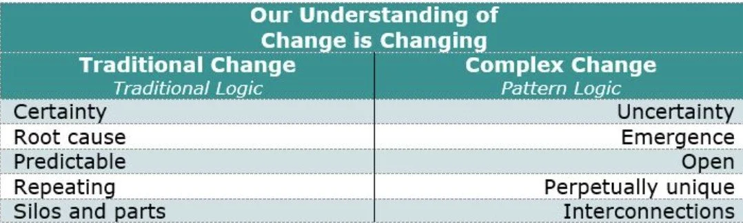 More recently, scientists, researchers, and practitioners have learned more about the complex nature of life. Because of their work, we’re better able to talk about the differences between the traditional understanding of change and the reality of complex change.